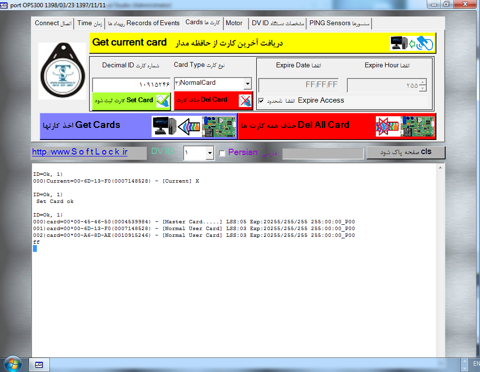 The user brings his/her card close to the control panel. It reads the card circuit and sends the information to the server through its communication system.